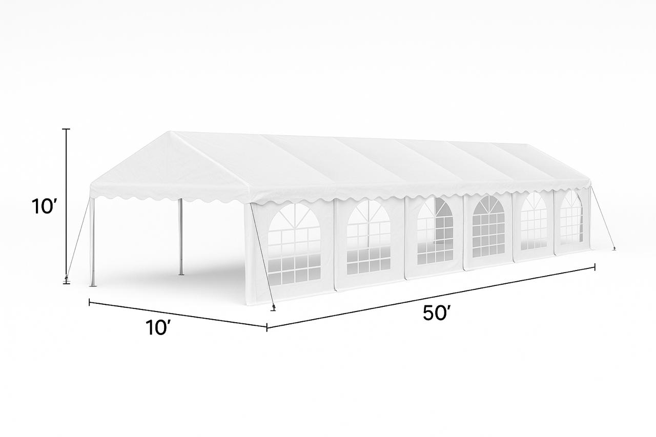Pricing is for tent only. Side curtains, liners, drape legs, air conditioner and lights are rented separately.